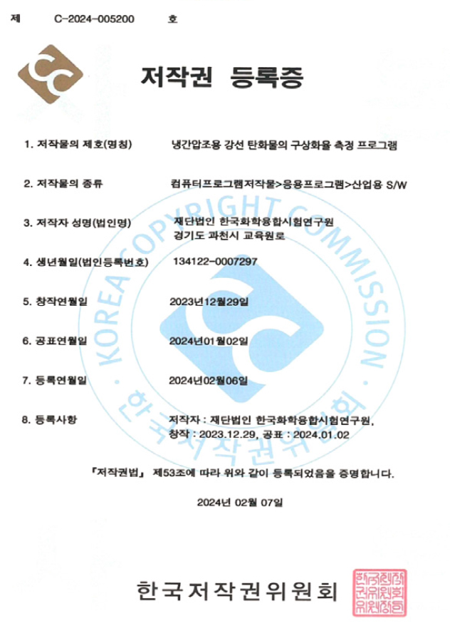 공인성적서 및 프로그램 저작권 등록증